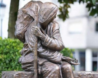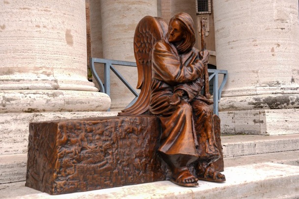 As I gaze at this image of the beautiful bronze statue, which sits outside the showers and Mother of Mercy Clinic in St Peter’s Square, Rome, I see familiar scenes of people crouched on our streets and in shop doorways, barely dressed or shod for the cold and rain and who possibly are homeless.