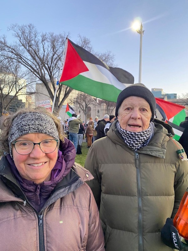 It is 7:40. We are facing east. The sun is rising as the Palestinian flag climbs its way to the top of the flagpole. The East, offering its gift of a new day, wisdom, and light; I long for a new beginning for all of us. Different speakers now offer their words of encouragement and hope: Muslim, Jew, Christian. All make reference to the Indigenous peoples of this land, who have also suffered the threat of erasure: the loss of language, land, and life. I am moved by Nellie Kennedy, the Minister for Sport, Culture, Heritage and Tourism. She easily greets us with the Arabic salutation: Salam alaikum! (Peace be upon you.) I quietly respond, “Maalekum salaam.” Ms. Kennedy is the first Muslim woman to be sworn into the Manitoba cabinet.