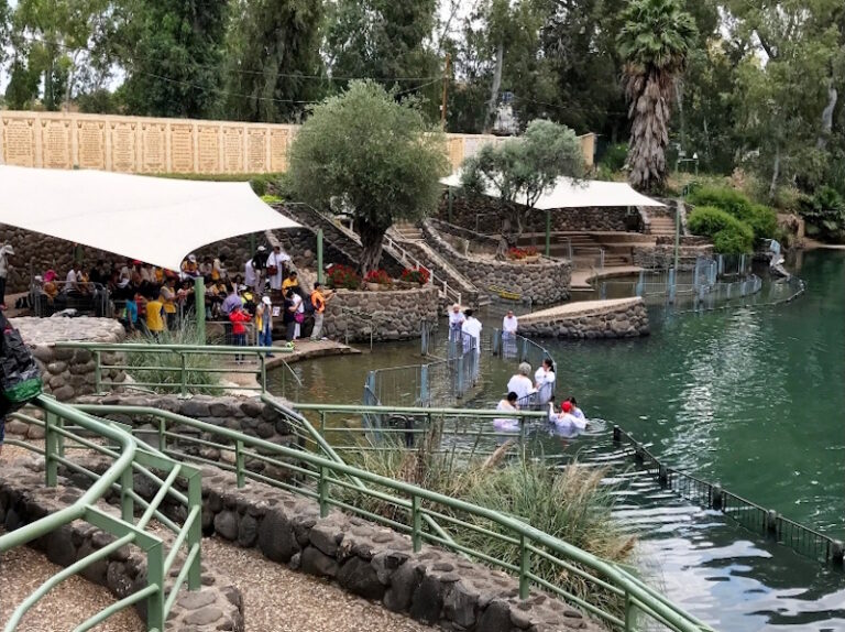 Scholars believe that Jesus was baptized by his cousin John at a point on the river not far from the Dead Sea. Today however, at a site upriver called Yardenit, a commercial facility with reception area, gift shop, changing rooms and showers has been set up to welcome both visitors who wish to be baptized in the river, and pilgrim groups of Christians renewing their baptismal vows as an act of devotion. You bring along your own clergy. When I visited Israel in 2011, the leader of my tour group was both a priest of the Anglican Church of Canada and a retired Chief of Chaplains for the Canadian Forces. (This is an excellent combination to have when you’re visiting a country with serious security concerns.)