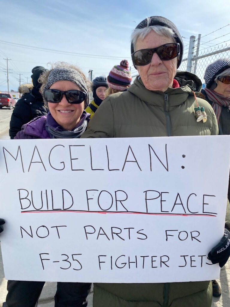 On the other outstretched arm, some friends and I participated in a rally for peace at the Magellan Aerospace complex here in Winnipeg. This corporation manufactures components used for weapons of war, often purchased by the USA to support the Israeli war against Palestinians. Canada has a ban on weapons being sold directly to Israel in this conflict. We held signs calling for peace, some passing cars honked their support, we prayed, we sang, we built community up and down the sidewalk! This small but not insignificant gesture, this community resilience, gave me the courage to be held in the pain.