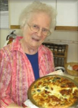 Sister Eleanor O’BrienEleanor received the recipe book Treasured Family Recipes, a Collection from Canadian Catholic Ladies as a gift when she visited June and Gertrude in Oxford House in the winter of 1994. Although she has made this recipe only 4 times, the book looks well used. She has dated all the recipes she has ever made from this book. This broccoli pie is very tasty and we all want her to date it again and again in the future!